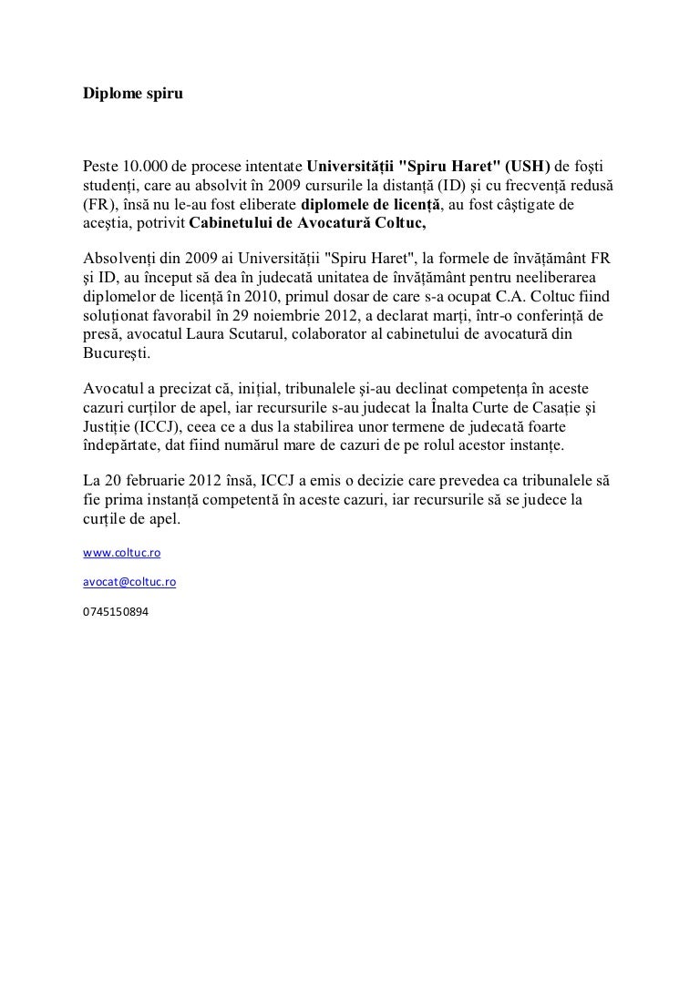 + instituţia publică liceul teoretic spiru haret, mun. Dar ce făceau persecutaţii pentru bani? @lora_selena iti recomand unul din centrele teritoriale ale univ spiru haret www.spiruharet.ro daca vrei sa studiezi la distanta, sau alte sectii id. Emiteau diplome de absolvent pentru module neacreditate. Universitatea privata „spiru haret inscrie studenti pe banda rulanta la invatamant la distanta (id) la facultati care nu sunt acreditate pentru aceasta forma de studiu.