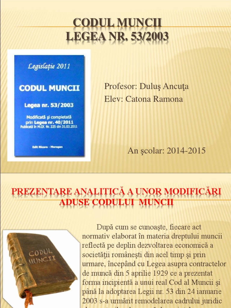 Codul Muncii Cu Modificdrile Aduse Prin O U G Nr Legea Dialogului Social Nr I R Legislalie Conexd R Decizii Ale Cu Ii Constitutionale Pdf Free Download Source from : https://docplayer.ro/191013252-Codul-muncii-cu-modificdrile-aduse-prin-o-u-g-nr-legea-dialogului-social-nr-i-r-legislalie-conexd-r-decizii-ale-cu-ii-constitutionale.html Hg 355/2007 actualizata prin hg 1169/2011 privind supravegherea sanatatii lucratorilor. 40/2011 pentru modificarea si completarea legii nr. Acolo unde a fost cazul, textele din cod sunt adnotate cu extrase din deciziile curtii de retinut ca modificarile aduse codului muncii prin legea nr. 40 din 31 martie 2011pentru modificarea şi completarea legii nr. 333/2003 privind paza obiectivelor, bunurilor, valorilor si protectia persoanelor.