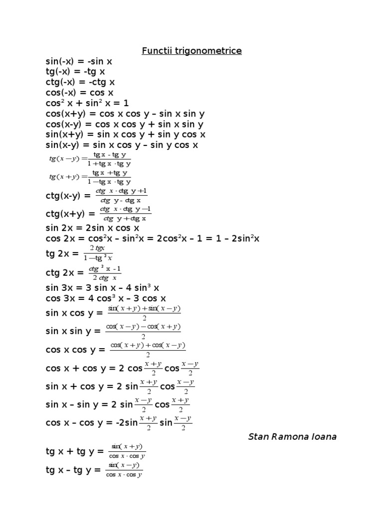 Tg(\alpha \pm \beta) = \frac { tg\alpha \pm tg\beta } { 1 \mp tg\alpha * tg\beta }. 1 + tg ^ 2 x = 1 / cos ^ 2 x 1 + sin ^ 2 x/ cos ^ 2 x = 1 / cos ^ 2 x 1 + sin ^ 2 x/ cos ^ 2 x = 1 / cos ^ 2 x (cos ^ 2 x + sin ^ 2 x)/ cos ^ 2 x = 1 / cos ^ 2 x 1 / cos ^ 2 x = 1 / cos ^ 2 x. S i n 2 x = 2 c o s x s i n x.