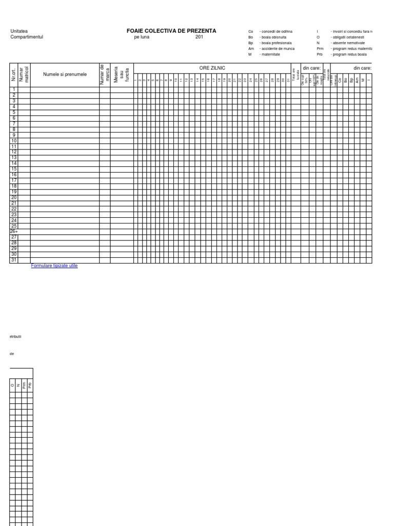 vizitati articolul complet aici : http://www.cvr-atelierul-de-meserii.ro/foaie-colectiva-de-prezenta-excel Model pontaj foaie prezenta vatamanu paula academia edu. 1 2 3 4 5 6 7 8 9 10 11 12 13 14 15 total. Nota receptie si constatare diferente nrcd cu tva format a4 hartie autocopiativa 60 g mp 3 exemplare alb roz verde 33 file ex 100 file.