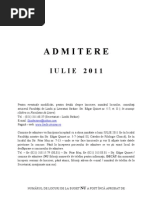 Calendarul admiterii propus de facultatea de limbi străine, care urmează a fi aprobat de rectoratul universităţii din bucureşti este: Rezultate admitere limbi straine 2011. 0 ratings0% found this document useful (0 votes).